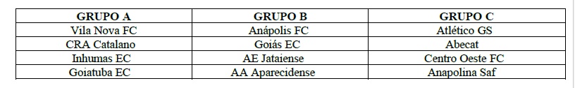 Conforme divulgado pela Federação Goiana de Futebol (FGF), o Goianão 2026 será disputado por 12 clubes, divididos em três grupos (veja a tabela 1).