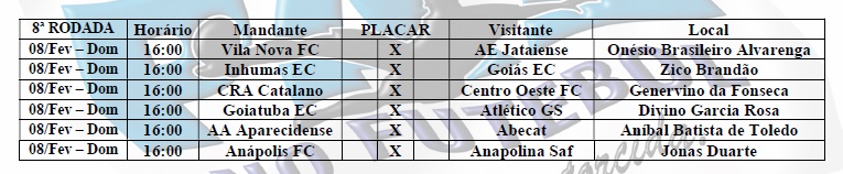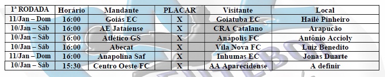 O Anápolis terá sua primeira partida do estadual dia 10/01, contra a equipe do Atlético, às 16 horas, no Estádio Antônio Accioly. Já a Anápolis terá sua primeira participação no Goianão, dia 11/01, jogando em casa no Jonas Duarte contra o Inhumas. Partida essa prevista para às 16 horas. (Veja tabela 2)